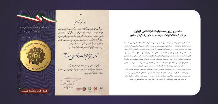 گسترش ابعاد فعالیتهای موسسه مشیز منجر به آن گردید که این موسسه در نخستین همایش مسئولیت اجتماعی ایران، موفق به دریافت نشان زرین مسئولیت اجتماعی از سوی ریاست محترم جمهوری شد و همچنین مقام مشاورهای ویژه سازمان ملل متحد به موسسه خیریه مشیز اعطا گردید.